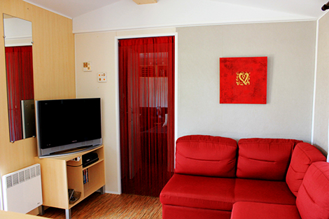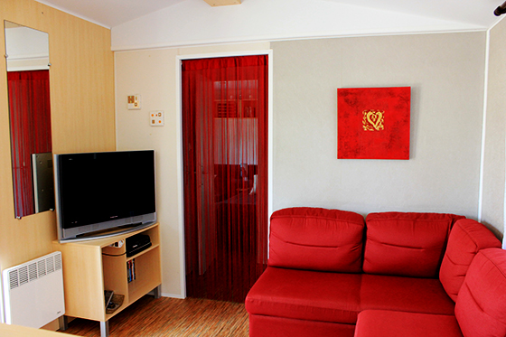 Le salon est équipé d'un canapé d'angle, d'une TV grand écran plat LCD avec parabole satellite (chaînes TNT) et lecteur DVD/DIVX/MP3 ainsi que d'une radio. Des DVD pour petits et grands et des jeux de société sont à votre disposition.